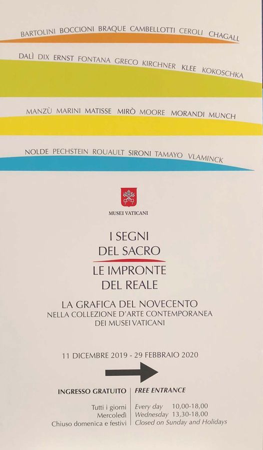 In the monumental spaces of Bernini's Braccio di Carlo Magno THE SIGNS OF THE SACRED – THE IMPRINTS OF THE REAL. Twentieth-century Graphic Arts in the Contemporary Art Collection of the Vatican Museums opens on Tuesday 10th December 2019, at 5.30 p.m. The exhibition, curated by Francesca Boschetti with the coordination of Micol Forti, Head of the Contemporary Art Collection of the Vatican Museums, invites the public to amazement and discovery.